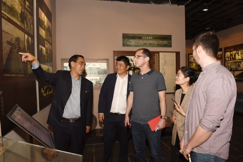 深入推進黨史學(xué)習(xí)教育走深走實,5月19日上午,我們在農(nóng)建四師陳列館中看到,有2名中德作物生產(chǎn)與農(nóng)業(yè)技術(shù)示范園的德國專家在翻譯的陪同下,也隨著黨支部20多名黨員一起,來到淮海農(nóng)場紅色教育基地,體驗黨史學(xué)習(xí)和軍墾傳統(tǒng)文化實境教育之旅活動,感受時下火熱的“紅色教育”。