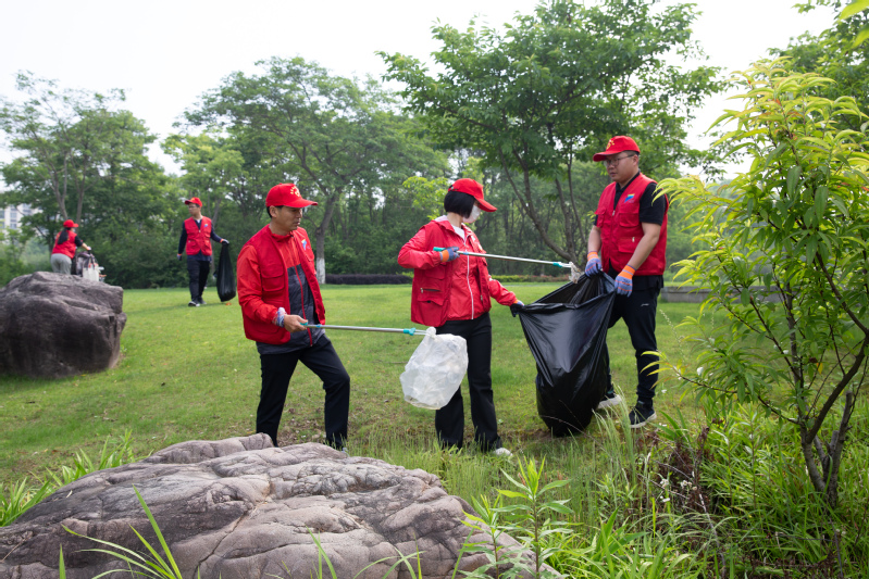 5月25日一大早,公司“莫文隋”志愿服務大隊體育健康志愿服務分隊11名志愿者頭戴小紅帽,身穿紅馬甲,拿著垃圾袋,從福地商業廣場出發,前往蘇錫通園區中澳生態園,邊走邊撿拾道路旁、河道旁、公園里,被隨手拋棄的礦泉水瓶、果皮、廢紙、煙蒂、包裝袋等垃圾。
