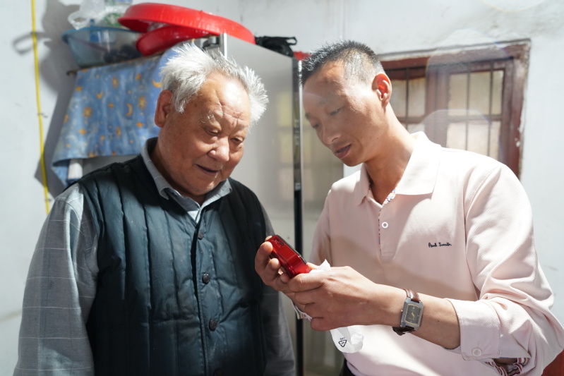 5月26日,三河農(nóng)場老黨員趙其義、李孝平、張如生收到了機關(guān)黨支部送去的一份特殊禮物——“紅色播放器”,送去的同志還耐心細致的教他們?nèi)绾问褂煤筒シ牛焕宵h員激動的說,這下好了,播放器放在身上,我們走到哪里都學(xué)黨史了,這樣真是方便多了。