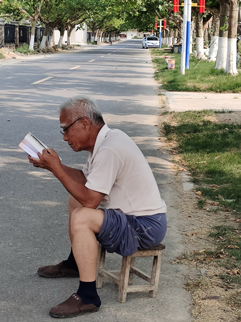 農場公司黨委先行從抓好在職黨員學習閱讀“四本指定用書”開始,讓大家讀原著,學原文,悟原理。在反復閱讀這部重要著作中,不斷增進感情,強化閱讀自覺性主動性,從而發自內心深處地去鉆研之,從而形成心靈的認同。繼而將學習“四本指定學習用書”覆蓋到全體離退休老黨員中。農場的老黨員不僅是淮海開荒建場功臣,是農場的寶貴財富,也是農場實施高質量發展提質增效的重要資源,是推動農場公司黨史學習教育活動扎實有效開展的重要力量。考慮到老黨員們年事已高,集中學習不便,為確保黨史學習教育全覆蓋,不缺課,不掉隊,農場公司黨委結合實際情況,以各基層黨支部為單位,為離退休黨員開展送學上門活動。將黨史“四本指定學習書籍”送到每一位離退休老同志們的家中,鼓勵他們繼續發揮黨員的先鋒模范作用,為農場的發展貢獻自己的力量和智慧。讓老黨員們足不出戶就能了解到黨史學習教育新思想新的要求,同時也讓他們感受到了來自組織的關懷和溫暖。圖為老黨員王老在路邊蔭涼下學黨史時的鏡頭。