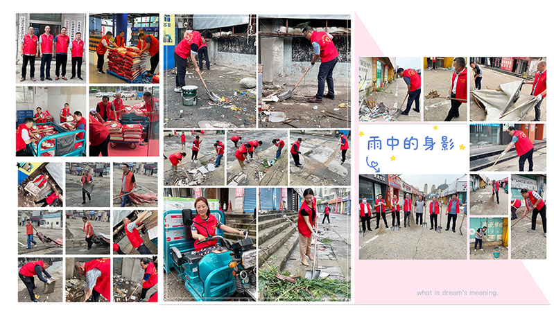 成立服務企業志愿隊,與企業共渡難關。市場租賃是金橋公司的主營收入,自今年1月建材市場因安全隱患嚴重關閉以來,這個本就不富裕的“大家庭”又迎來了新的挑戰。面對清租后市場內建筑垃圾清理的高額費用,6月16日,辦實事志愿服務隊正式啟動,黨委書記陳海斌、總經理裴書忠攜領導班子成員擼起袖子帶頭干,帶領著志愿服務隊共同清掃市場垃圾。炎炎夏日,烈日當頭,志愿隊的成員絲毫不受影響,不怕苦、不怕臟、不怕累,清理了一車又一車的垃圾,不論是刮風下雨、還是高溫暴曬,都阻擋不了志愿服務隊的決心與步伐,看著再度恢復整潔、干凈的道路,看著清理前后的差距對比,同志們揮灑汗水,露出滿足的笑容。另外,志愿服務隊自發承擔起墾米油的上下力和運輸工作,將一袋袋米、一箱箱油運往門店,極大節約了從倉庫至門店的力資費和運輸成本。