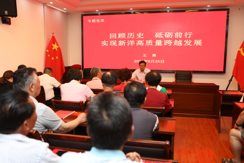 6月25日,新洋老干部黨總支召開黨員大會,紀委書記王勇為老黨員上了一節黨史學習教育專題黨課。新洋機關一支部全體黨員參加了此次活動。