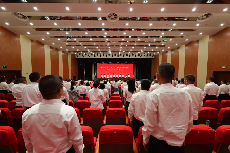 為隆重慶祝中國共產黨百年華誕,7月1日,東辛農場公司在文化活動中心召開慶祝中國共產黨成立100周年暨“七一”表彰大會。農場公司黨委書記、董事長韓中書講話并上黨課,黨委副書記、蘇墾農發東辛分公司總經理張康強主持會議,農場公司副總經理陳躍武宣讀“兩優一先”表彰決定,領導班子成員、農場公司、農發東辛分公司及社區助理以上黨員干部、“光榮在黨50年”老黨員代表、新發展黨員及“兩優一先”受表彰人員300余人參加會議。