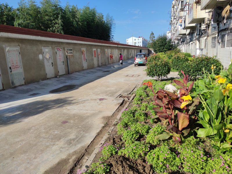 淮海農場淮海路9號樓因樓房建造較早,當時沒有考慮建造車庫,樓房南側與車庫之間的位置相對較寬,成為農場較好的樓房之一。但由于經濟的發展,職工居民生活水平的提高,目前小轎車已經進入了千家萬戶,所以原先相對較寬的樓房與車庫過道,因小轎車的進入而顯得狹窄了許多,并給會車帶來了不少困擾。農場公司黨委了解到職工居民的訴求后,通過相關部門上門勘察,提出了在保護綠化用地的前提下,將小車庫門前一塊近2米的平臺拆除,然后將門前道路與小車庫門之間,通過澆鑄弧形場地的形式,既不影響人們進出小車庫放置車輛的問題,解決了門前排水的難題,又較好地解除了轎車因會車或倒車難的困境,得到了小區職工居民的好評。