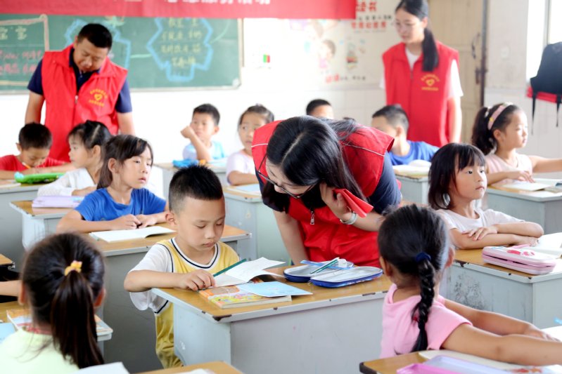 小課堂上,氣氛火熱。志愿者們分工合作,積極與孩子們進(jìn)行互動(dòng)交流,帶領(lǐng)他們開展各種活動(dòng),大家都沉寂在歡聲笑語(yǔ)中。孩子們都十分喜歡志愿者們,他們說(shuō):“這些大哥哥和大姐姐都很棒,給我們講解不會(huì)的題,讓我們有了更深的認(rèn)識(shí)和理解。”志愿者們也在志愿服務(wù)過程中感受到了快樂和滿足。