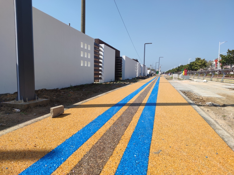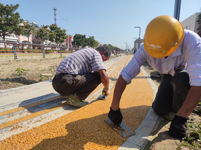 隨著體育健康文化深入人心,越來越多的職工居民十分關(guān)注農(nóng)場公司黨委這一惠民的建設(shè)項目,紛紛參與到農(nóng)場公司打造的健身運動平臺行列中來。而健身步道作為農(nóng)場公司黨委為民辦實事的項目工程,此建設(shè)任務(wù)不僅滿足廣大職工鍛煉的需求,更是提升了美麗農(nóng)場的創(chuàng)建水平。圖為健身步道項目工程施工人員正在進行健身彩色步道的鋪設(shè)工作。