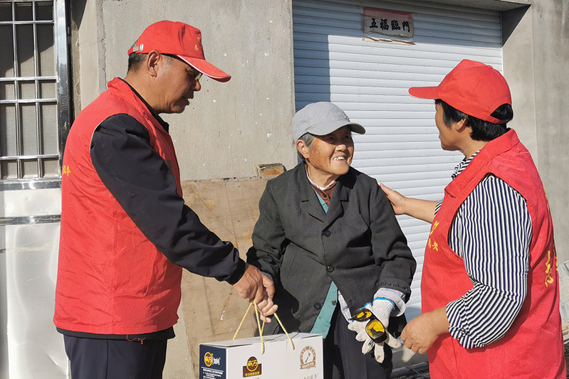 活動前,分隊長馬建春向志愿者分隊成員闡述了此次活動的重要意義,并將志愿者們分為三個小組,帶著農場公司黨委領導的囑托,分別探望了場域內部分80歲以上、子女不在身邊的老人,為老人們送上慰問和祝福。