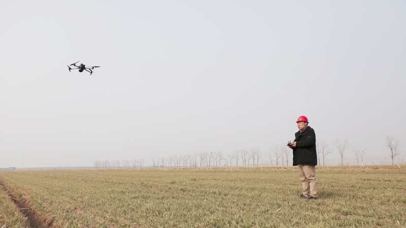 春季是雜草生長的高峰期,同時也是小麥?zhǔn)┓实年P(guān)鍵節(jié)點。及時開展化學(xué)除草并合理施肥,能夠有效抑制雜草危害,為小麥生長補充所需養(yǎng)分,促使麥苗茁壯成長。連日來,在三河的 4.2 萬畝麥田里,無人機、植保機在田間往來穿梭,開展化除作業(yè)。各生產(chǎn)區(qū)依據(jù)前期對草情苗情的普查結(jié)果,科學(xué)挑選除草劑,并嚴(yán)格按照配比和操作規(guī)程進(jìn)行噴施,在確保除草效果的同時,防止對小麥造成藥害。與此同時,針對不同地塊的肥力狀況以及小麥生長態(tài)勢,制定了精準(zhǔn)的施肥方案,以提升肥料利用率。2月27日上午,在潘莊生產(chǎn)區(qū)王佳鈺規(guī)模體田間,生產(chǎn)區(qū)副主任朱廣耀、農(nóng)業(yè)技術(shù)員孫文崢一邊在田間查看雜草發(fā)生情況,一邊根據(jù)苗情苗勢制定化除和施肥方案。田的另一側(cè),無人機空中作業(yè)與地面植保機作業(yè)的轟鳴聲交織在一起,一幅春管生產(chǎn)繁忙的畫卷呈現(xiàn)在眼前。“由于前段時間長時間干旱無雨,給在田小麥管理帶來了一定影響,這次降雨對小麥生產(chǎn)極為關(guān)鍵,我們務(wù)必抓住這次降雨的有利時機,完成麥田春季化除和肥料撒施工作,化除工作今天基本結(jié)束,就等著下雨撒肥了。” 潘莊生產(chǎn)區(qū)副主任朱廣耀說道。為切實做好春季麥田化除和施肥工作,該場農(nóng)業(yè)中心還組織了農(nóng)業(yè)技術(shù)服務(wù)隊伍,深入田間地頭進(jìn)行