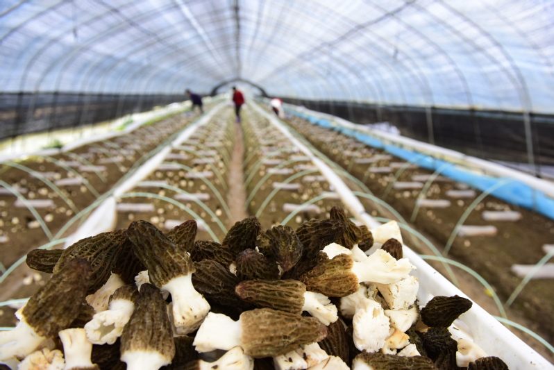4月9日上午,淮海農場公司食用菌種植基地大棚內,員工們正在采收羊肚菌。近年來,淮海農場公司嘗試發展羊肚菌、赤松茸等食用菌菇產業,通過做強做大做出特色,嘗試新的區域經濟發展的亮點。