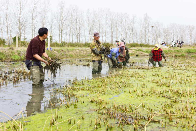 為充分發揮區域龍頭企業的作用,大力扶持和發展綠色低碳創新型企業,近年來,淮海農場有限公司通過各項惠農政策,將過去私營小作坊的愛蓮苑水生花卉有限公司,打造成全國知名的科創型愛蓮苑水生花卉品牌。愛蓮苑水生花卉基地中有完整的雜交圃、選育圃和株行圃,共培育出近百個荷花新品種,有10個品種在全國荷花新品種評比展示中獲得一二三等獎。圖為3月31日,愛蓮苑正按照百萬株水蔥的市場訂單需求,在組織員工涉水采摘。