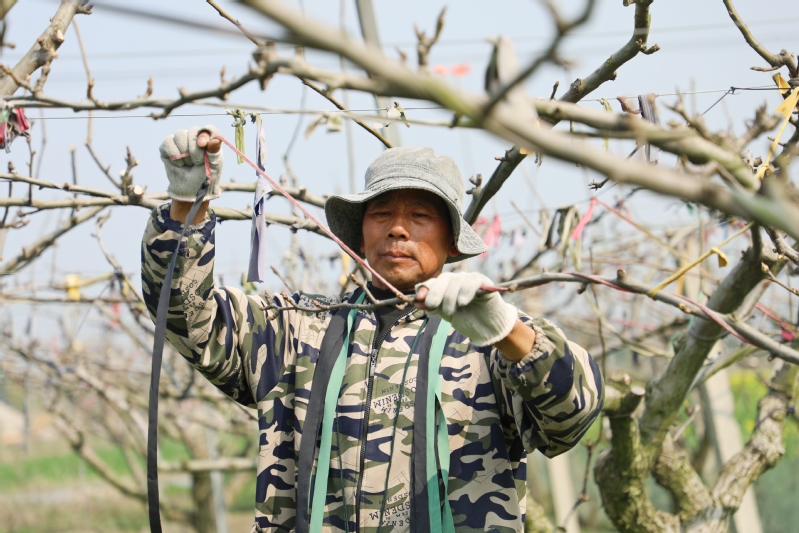 近日,江心沙農場果農搶抓果樹“枝條柔軟、可塑性強”的生育期,集中對20余畝果園進行拉枝處理,合理分布枝條空間、改善光照通風條件、協調果樹生長與結果的矛盾,綜合提高坐果率和果實品質。