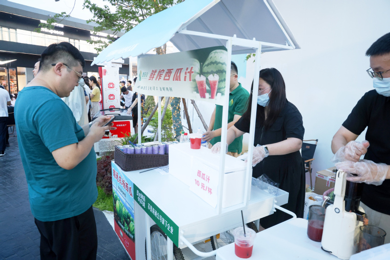 6月29日,“蘇超”聯(lián)賽焦點(diǎn)戰(zhàn)——南通隊(duì)對(duì)陣宿遷隊(duì)的較量火熱打響,蘇錫通園區(qū)楓葉小鎮(zhèn)奧特萊斯“第二現(xiàn)場(chǎng)”化身一片歡樂(lè)海洋。場(chǎng)內(nèi),巨幕大屏實(shí)時(shí)捕捉著賽場(chǎng)每一寸風(fēng)云變幻,將攻防轉(zhuǎn)換的緊張刺激清晰投射;場(chǎng)外,攤車(chē)次第鋪開(kāi),循著光影軌跡駛?cè)胪挼拿朗惩鯂?guó)。南通公司順勢(shì)借“蘇超”賽事的火熱東風(fēng),特別推出農(nóng)場(chǎng)直供的鮮榨西瓜汁——炎炎夏日里,這份冰爽與甘甜恰似一劑及時(shí)的“救贖”。捧起西瓜汁猛灌一口,帶著沙沙綿密口感的清甜瞬間漫過(guò)舌尖,將積攢整日的燥熱滌蕩一空。賽事開(kāi)始后,現(xiàn)場(chǎng)氣氛愈發(fā)沸騰,數(shù)千人流交織著歡聲與笑語(yǔ),鮮榨西瓜汁也順勢(shì)迎來(lái)了銷售熱潮。當(dāng)晚9時(shí),所有鮮榨西瓜汁便銷售一空。杯盞間的余味里,那一份清爽甘洌陪伴著意猶未盡的旅客,將賽事熱情延續(xù)到深夜。