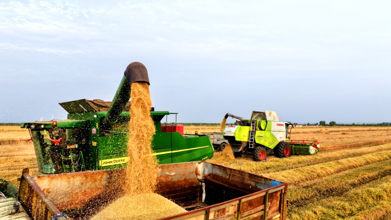 風(fēng)吹麥浪,滿地金黃。蘇墾農(nóng)發(fā)東壩頭分公司搶抓晴好天氣加緊搶收,數(shù)臺收割機(jī)馬力全開在田間來回穿梭,金黃的麥浪在轟鳴聲中起伏。