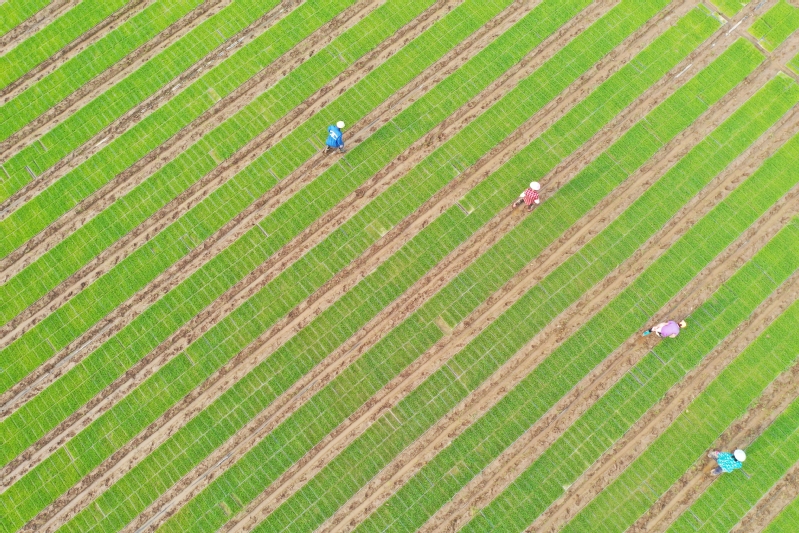 5月29日,蘇墾農(nóng)發(fā)江心沙分公司工人在田間忙著揭膜煉苗、躬身巡苗、定點(diǎn)查苗,為肥水管理和病蟲害防治提供參考,確保育出適齡壯秧,按時(shí)移栽。